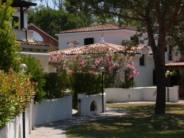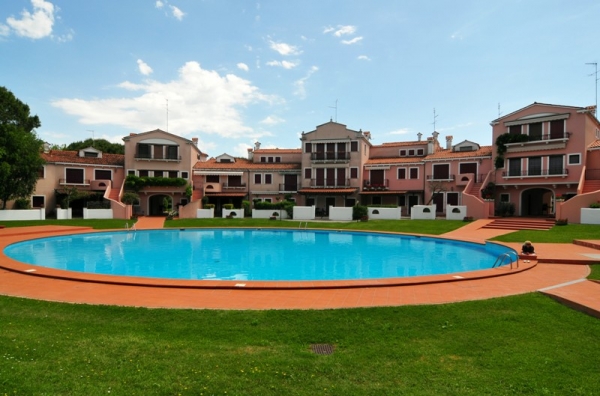 Complesso residenziale con piscina grande e verde rigoglioso composto da diversi fabbricati a pochi passi dalla pineta e dalla spiaggia.