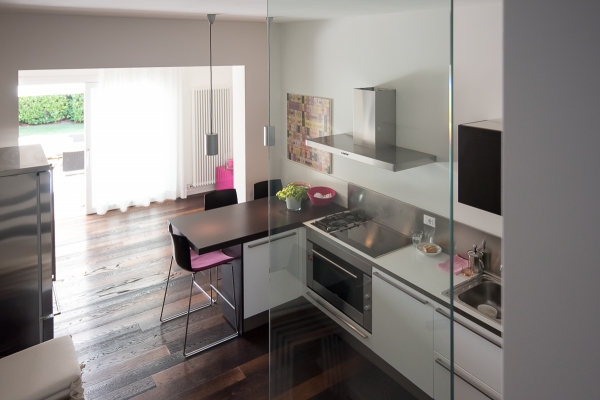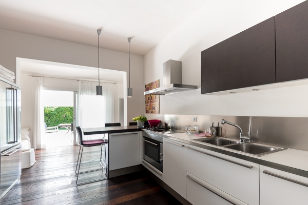 Al piano terra in open space si trovano living, la cucina, il ripostiglio e un bagno per gli ospiti,
