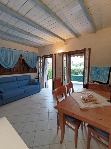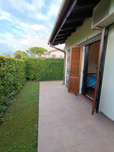 Interni: soggiorno con angolo cottura, due camere matrimoniali, 1 bagno finestrato. Ampio terrazzo con tenda frangi sole e vista sul giardino. Ripostiglio.
